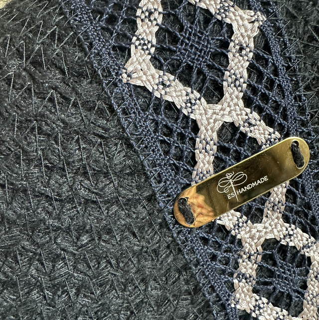 Élégant et unique, le sac Luméa en corde noir se distingue par sa touche raffinée de dentelle bleu marine. Sa bandoulière réglable, assortie à la dentelle, permet de l’adapter facilement à toutes les morphologies et à tous les styles, du quotidien chic à la sortie habillée.