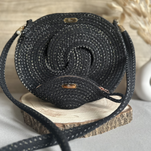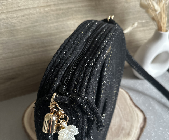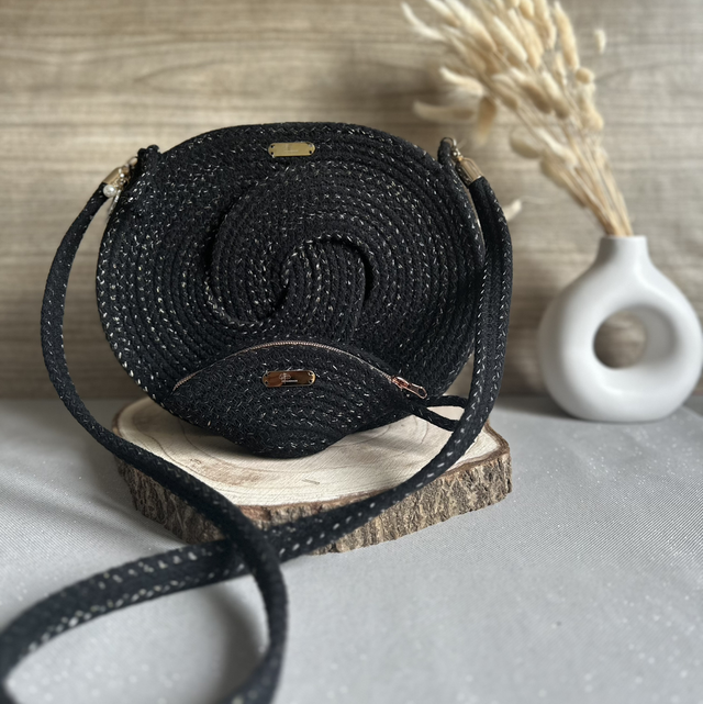 ✨ Découvrez le sac Infini Noir orné de fils dorés, un modèle artisanal unique qui allie élégance et originalité.