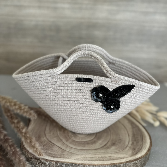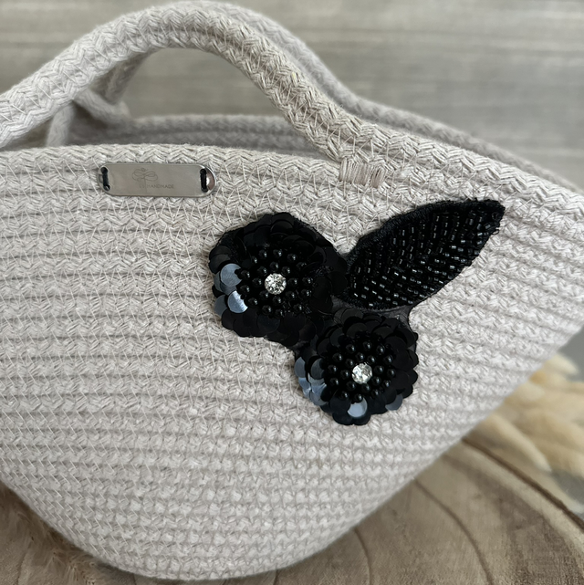 Élégant et minimaliste, le mini Nélya beige joue la carte du détail qui fait toute la différence : une petite fleur noire, délicatement cousue, qui apporte du contraste et une touche chic sans en faire trop. Son coloris beige doux s’accorde avec absolument tout, et son format compact te permet d’emporter l’essentiel en gardant un look soigné.