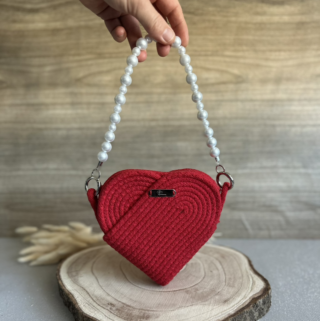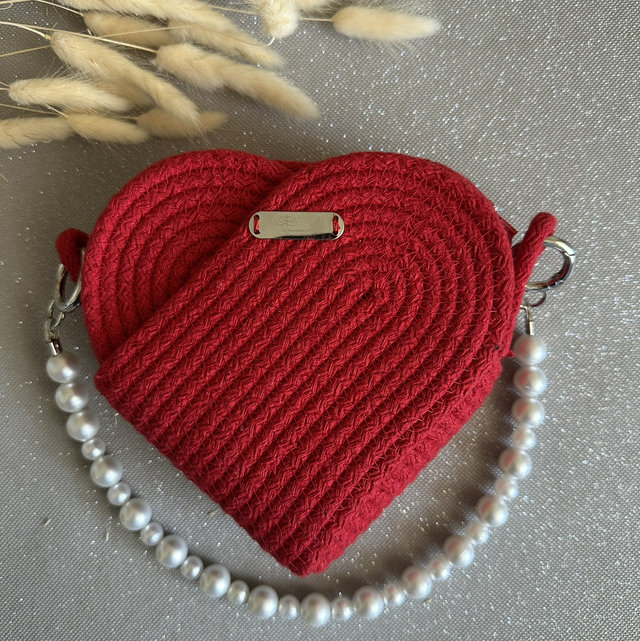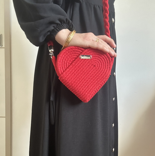 Le Saphia cœur rouge est un sac unique en corde de coton haut de gamme, entièrement fait main. Son motif cœur apporte une touche romantique et élégante, parfaite pour celles qui aiment les détails qui font la différence.